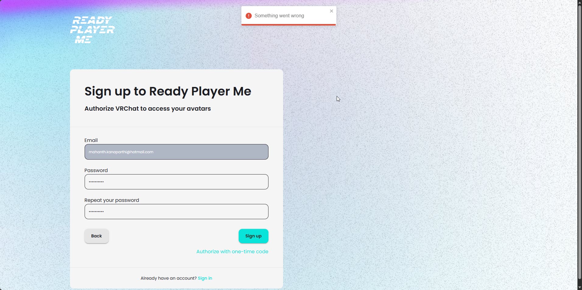 The Problem (New User Signup Failure): New users who do not already have a Ready Player Me account are unable to complete the signup process (via email/social login) using the custom subdomain URL. We are getting message “Something went wrong”.